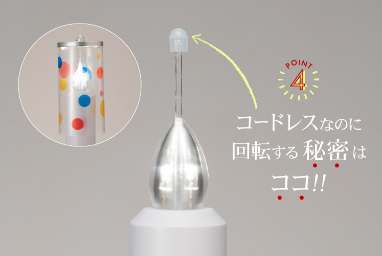 コードレスなのに回転する仕組みの秘密は、提灯に取り付けるLED電池灯にあります。