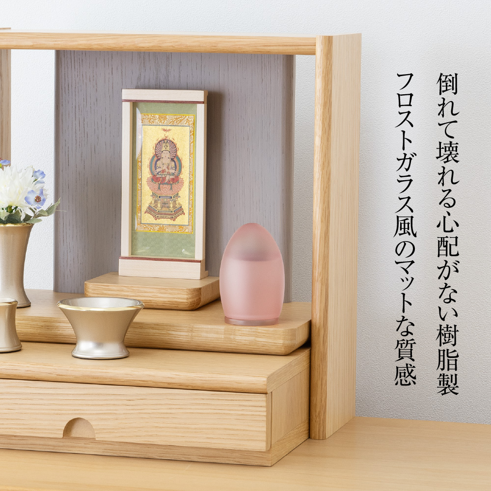 フロストガラス風のマットな質感の樹脂製なので、倒れて壊れる心配がありません。