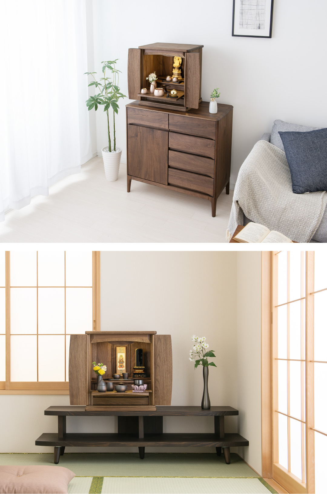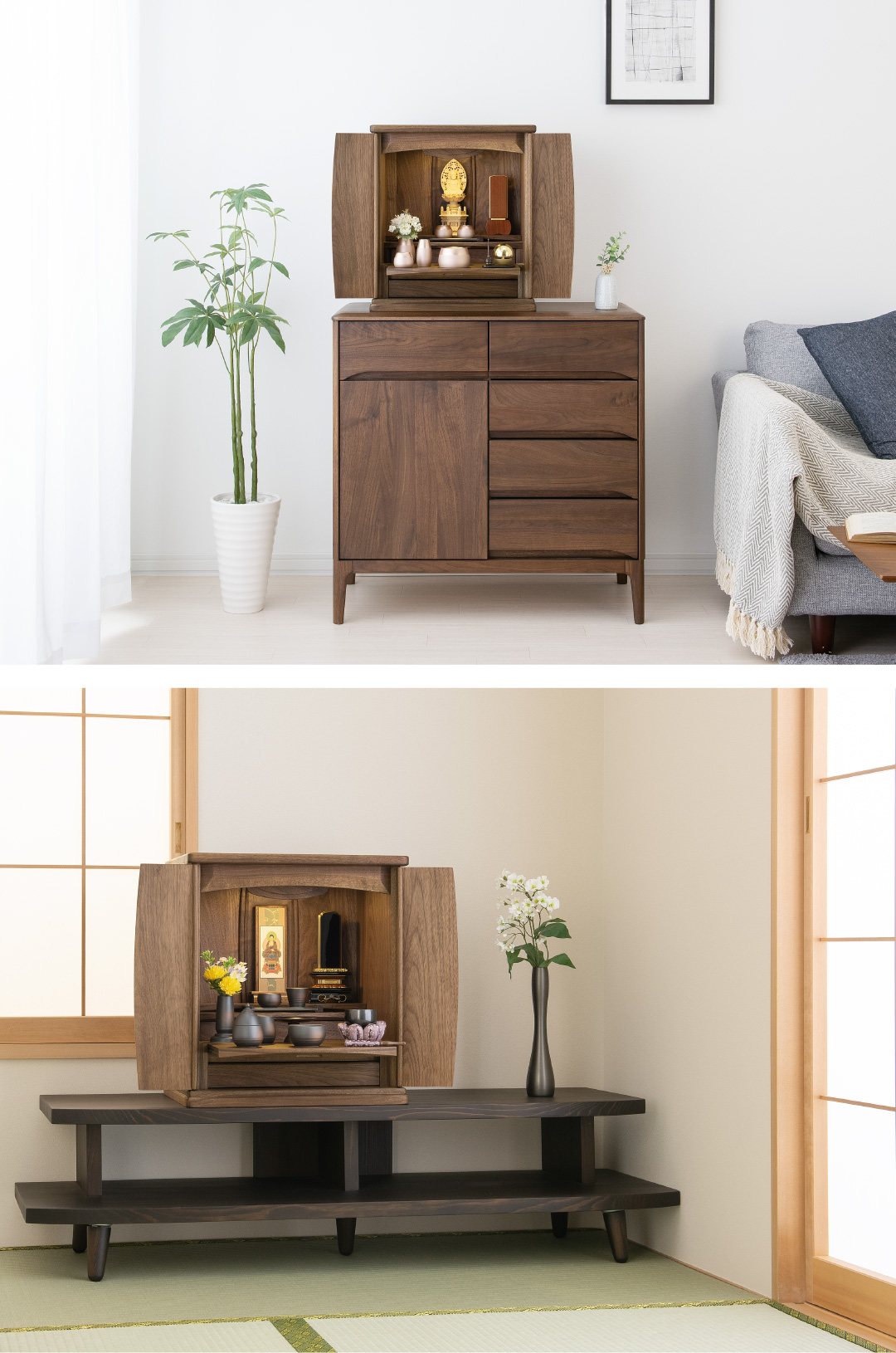無垢材の温もりを感じることができる美しい佇まいは、お部屋に穏やかな祈りの空間を作り出してくれます。