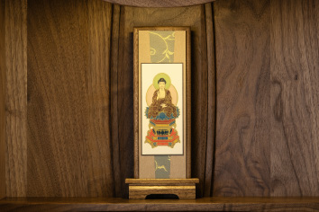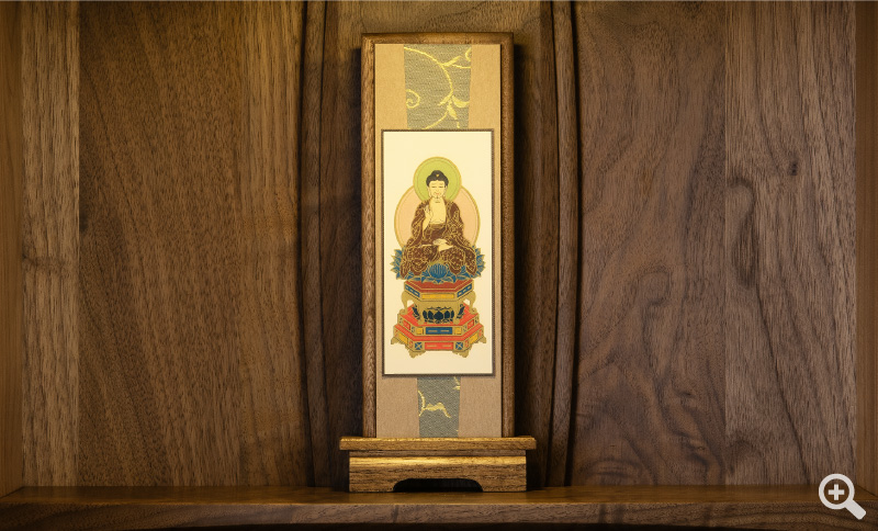 ご本尊様は、仏壇の中央にそのままご安置できるスタンド型の掛軸をお付けいたします。