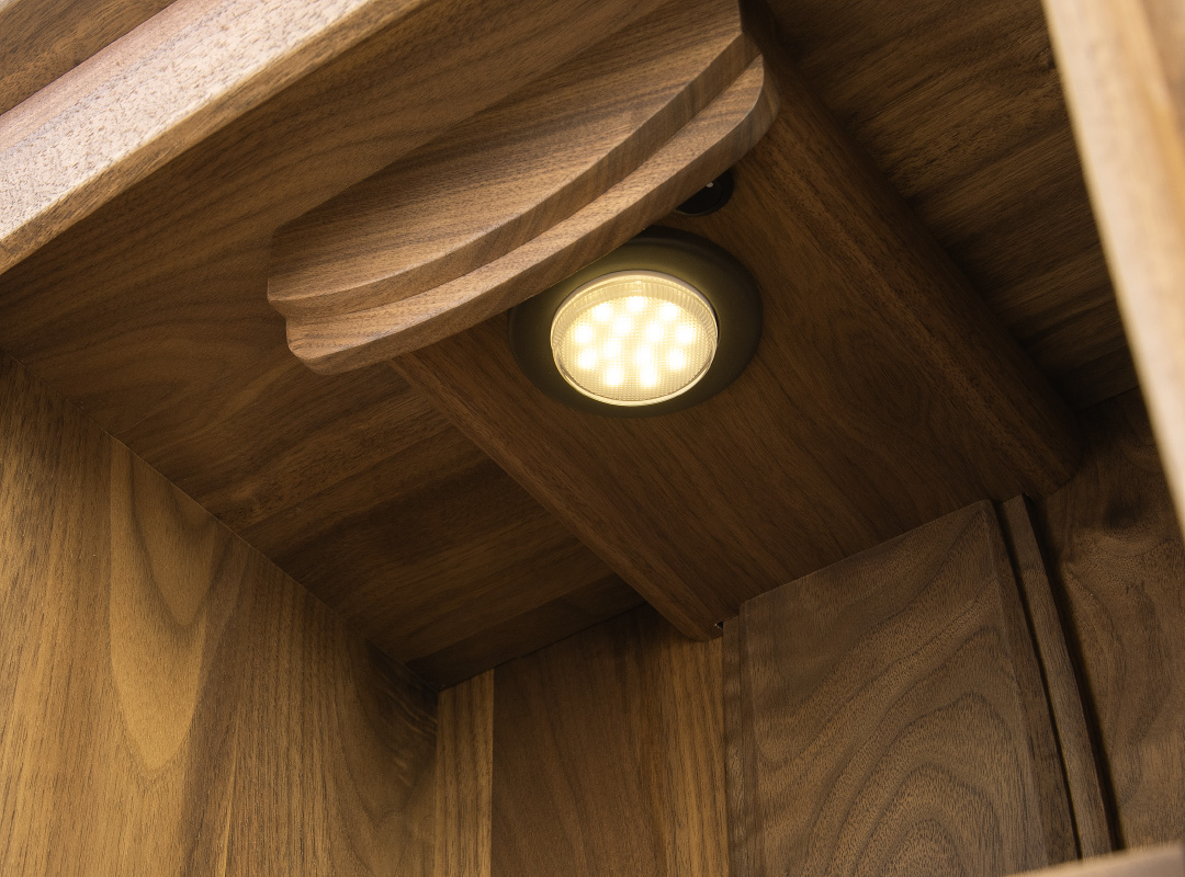 LEDライトは発熱量が少ないので、安全性が高く、お仏壇の劣化も防ぎます。ライトの手前にON/OFFのスイッチがあります。