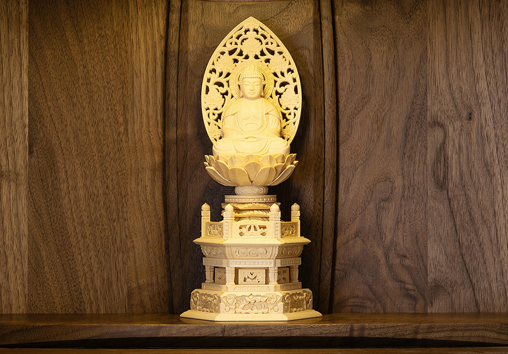 お仏壇に合わせた寸法の仏像をお付けいたします。 詳細はこちら »