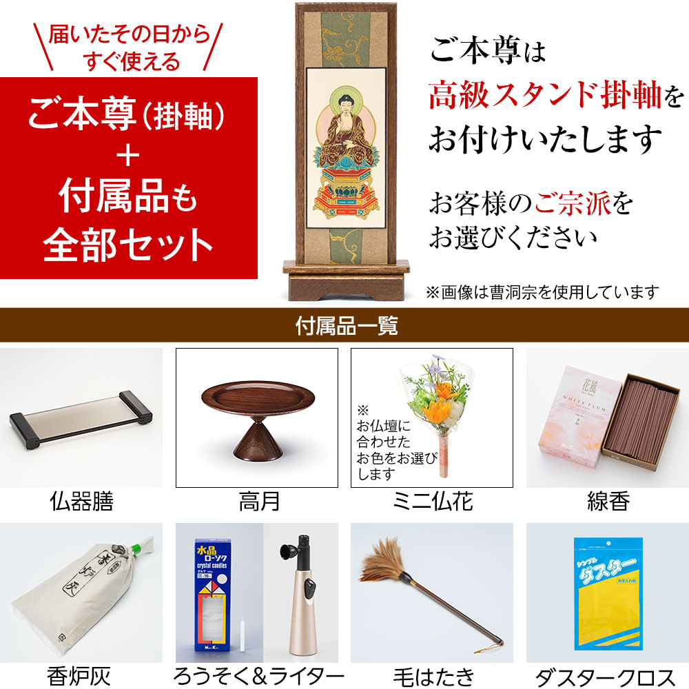 仏壇本体にご本尊+仏具一式+付属品がすべて揃うお得なセット