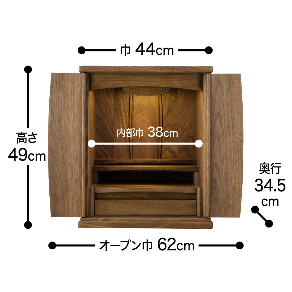 | 正面表面材 | 笠・台輪:ウォールナット無垢 戸板・扉:ウォールナット無垢 |
