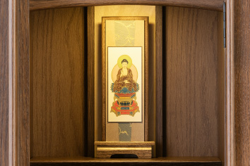 ご本尊様は、仏壇の中央にそのままご安置できるスタンド型の掛軸をお付けいたします。