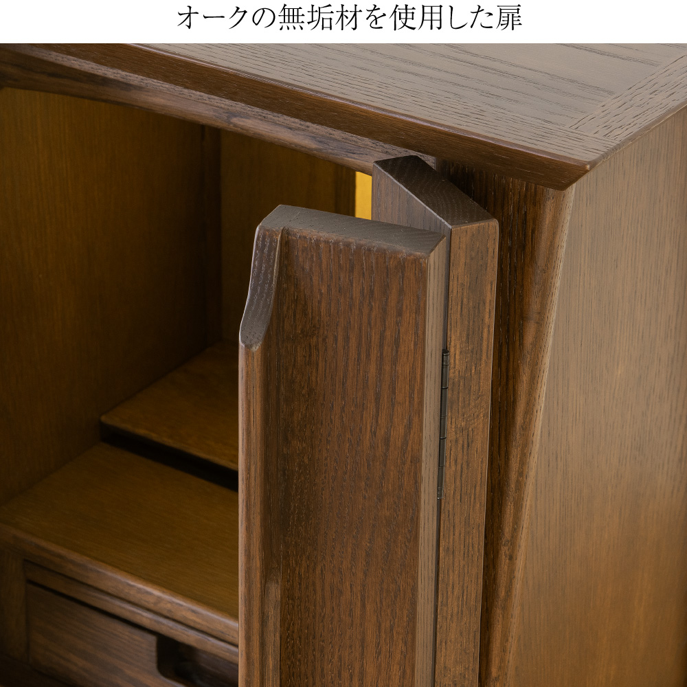 | 正面表面材 | 笠・台輪:オーク厚板貼り 戸板・扉:オーク無垢 背板中央:メープル薄板貼り |