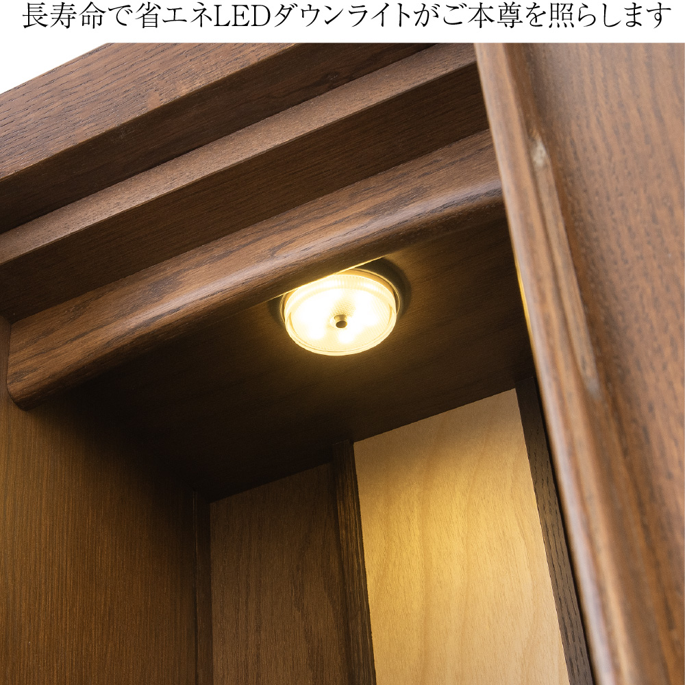 長寿命のLED照明やスライド式棚板など、毎日のおまいりに便利な機能も備わっています。