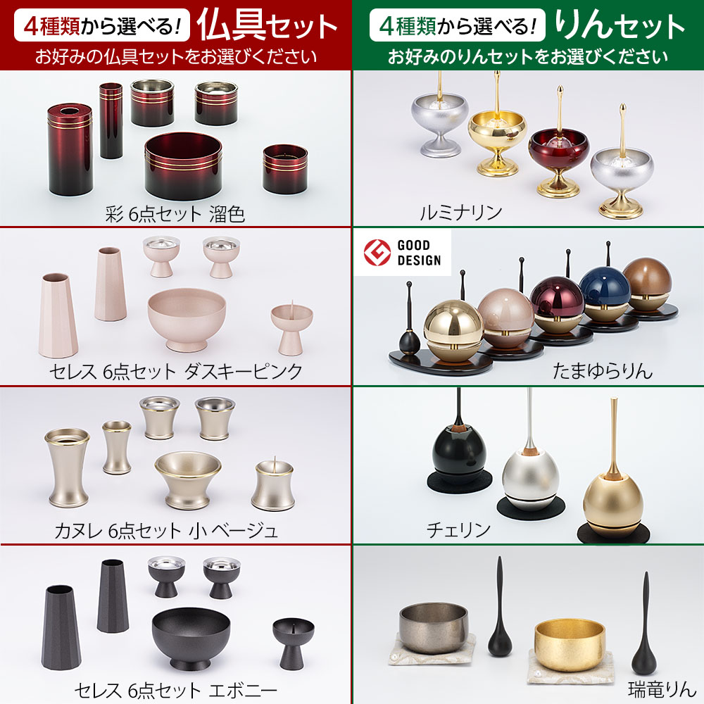 4種類の中からお好みの仏具セットを1つお選びください。