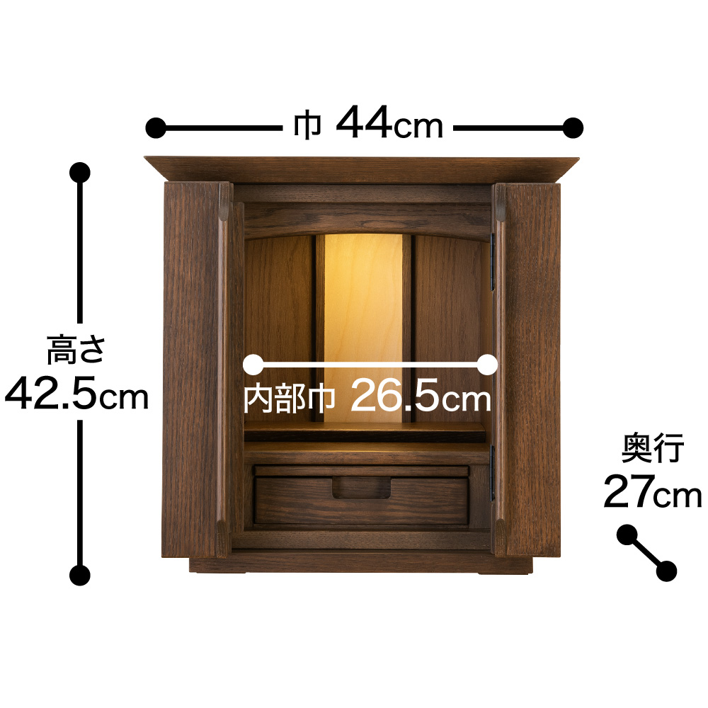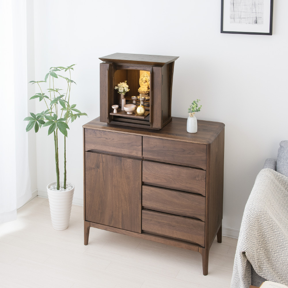 現代のライフスタイル、暮らしのスペースにマッチしたコンパクトサイズ。チェストや整理タンスの上にもお飾りいただけるので、ご安置する場所を選びません。