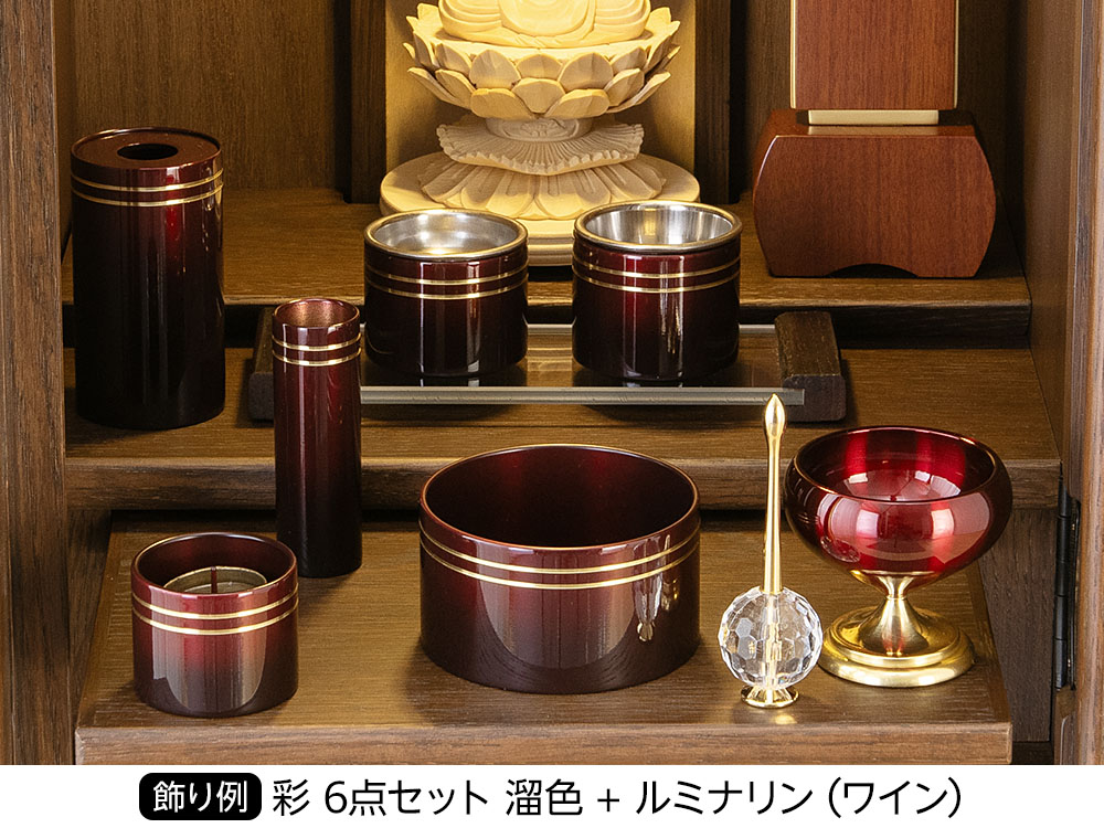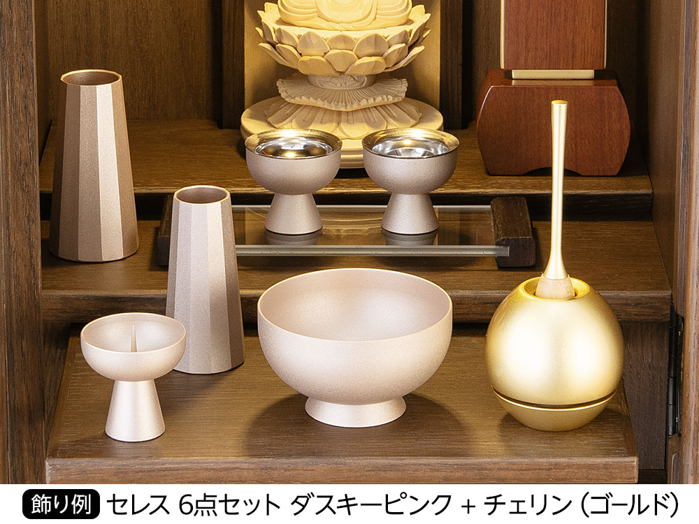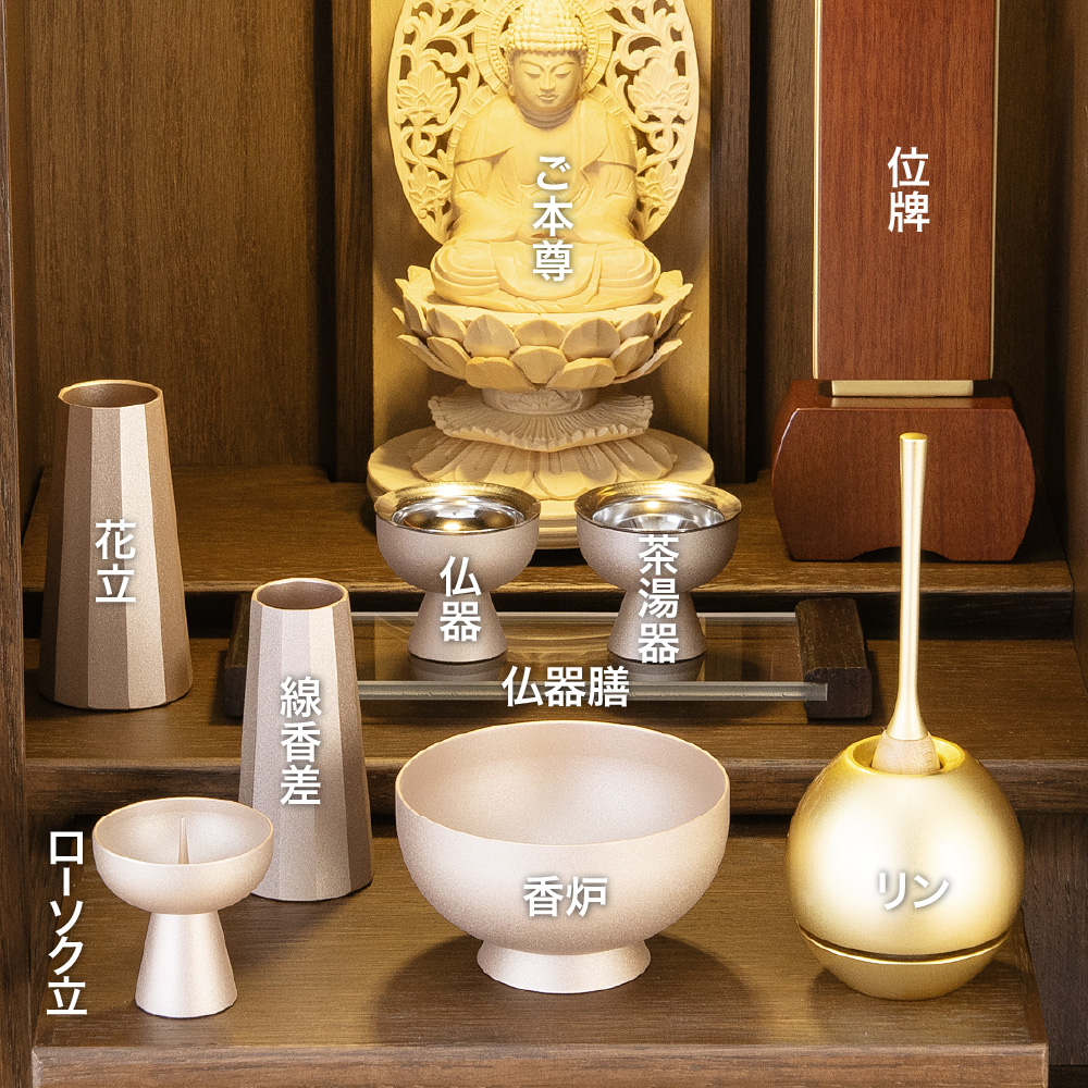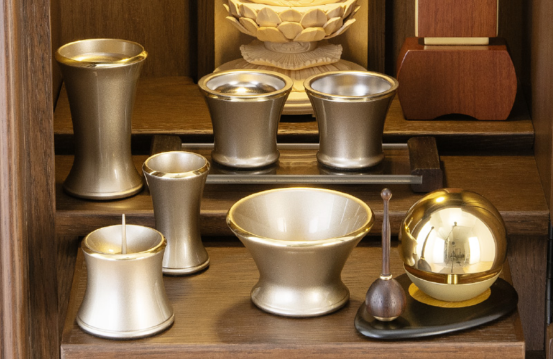 お仏壇をお使いいただくのに必要な仏具や小物などをセットにしてお届けいたします。