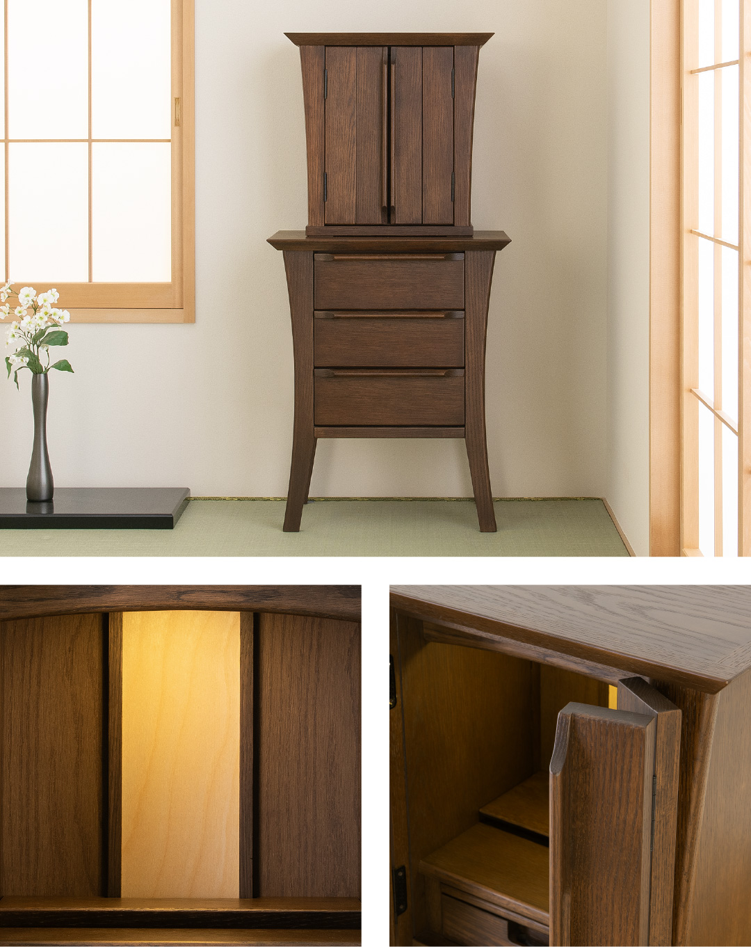 木材の良さを活かした美しい佇まいは、お部屋に穏やかな祈りの空間を作り出してくれます。