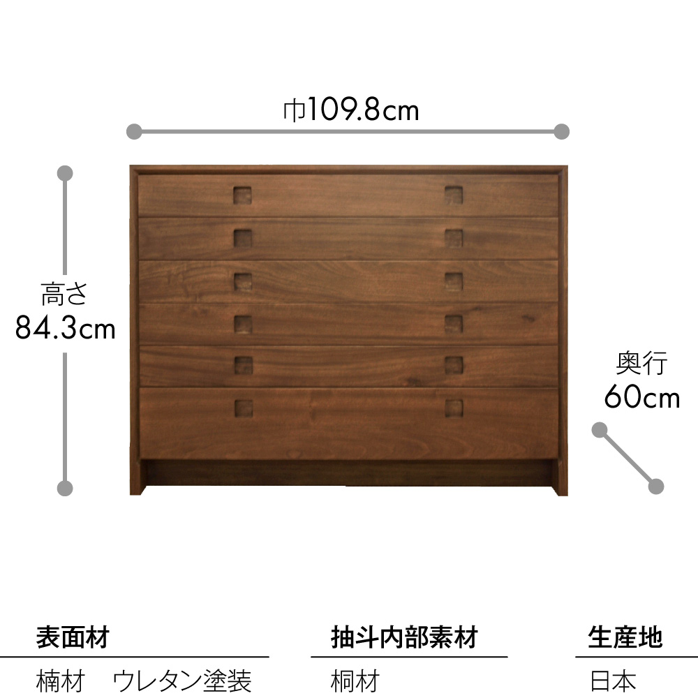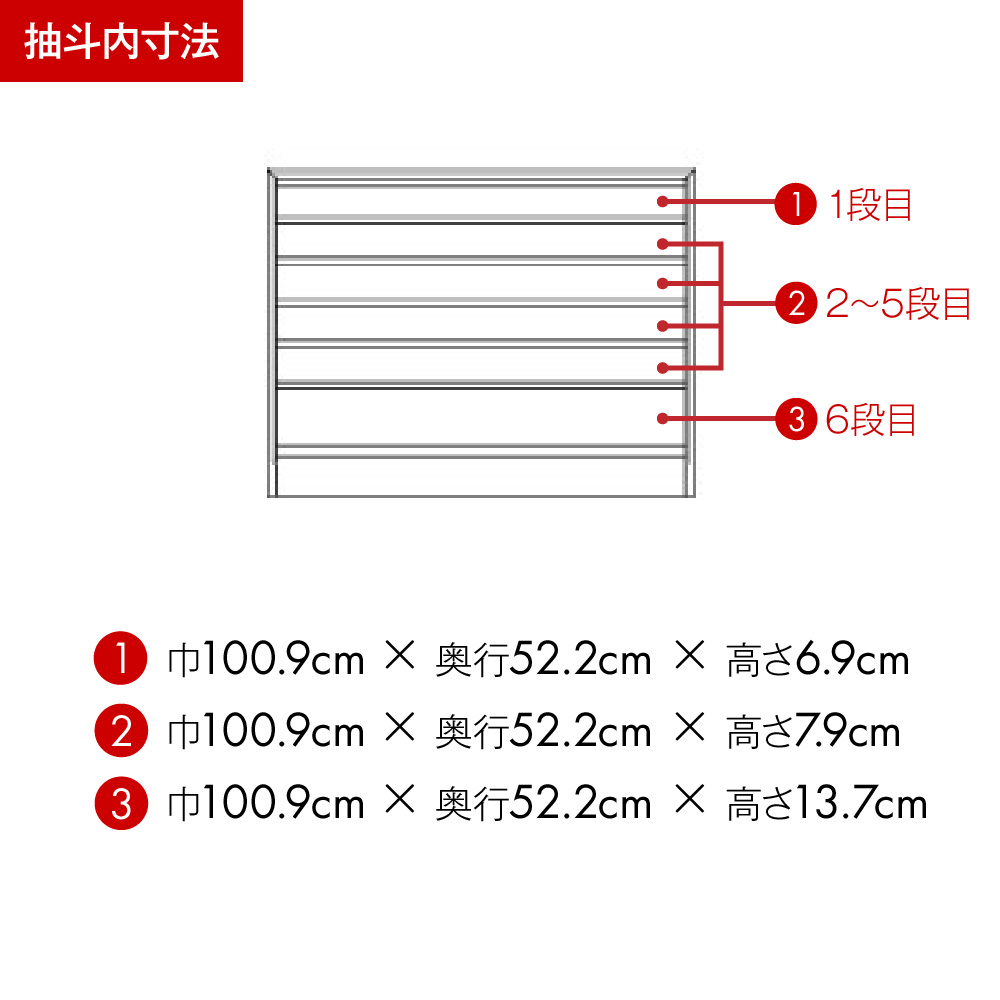 抽斗内寸法1段目-巾100.9cm×奥行52.2cm×高さ6.9cm