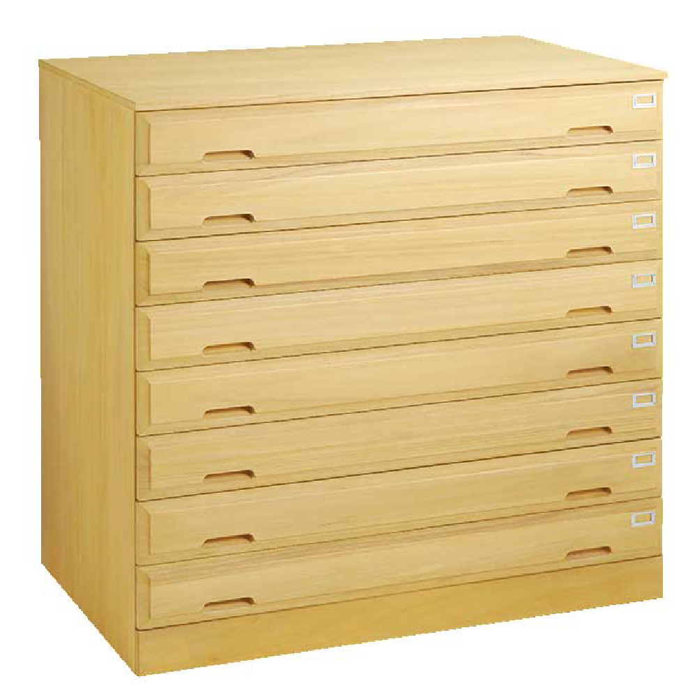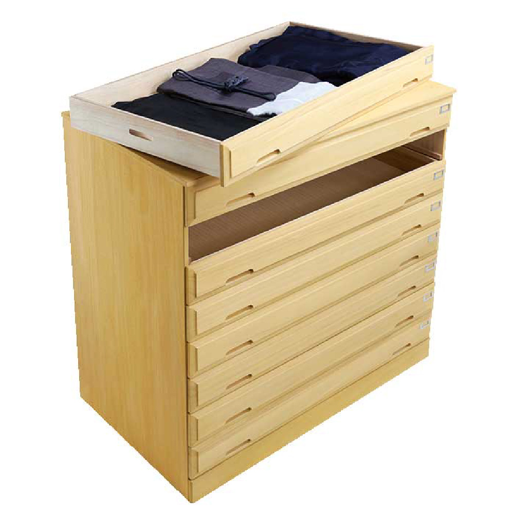 8段の抽斗(ひきだし)は、どの段にも入れ替えが可能な便利な設計です。