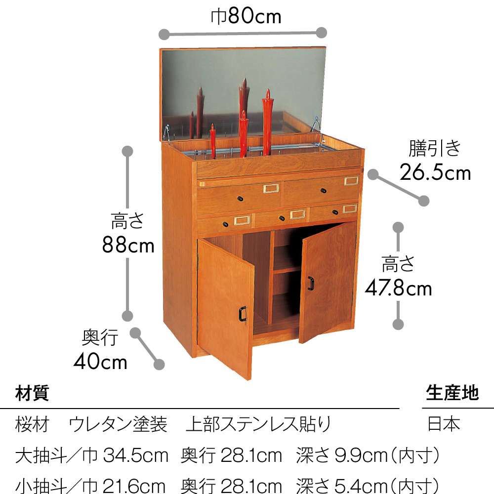 抽斗(ひきだし)内部寸法大抽斗-巾34.5cm×奥行28.1cm×深さ9.9cm