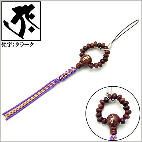 梵字入り念珠ストラップ・丑寅・素引き縞紫檀