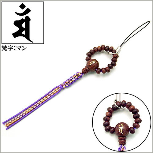 梵字入り念珠ストラップ・卯・素引き縞紫檀