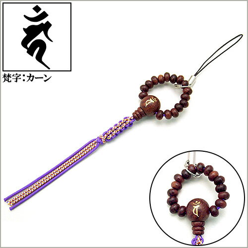 • 梵字入り念珠ストラップ・酉・素引き縞紫檀